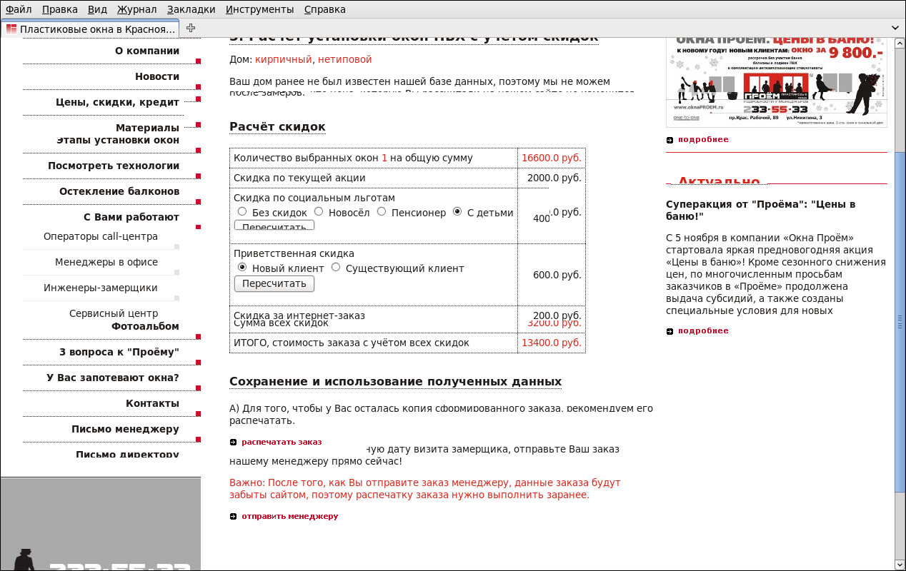 www.oknaproem.ru: Расчёт стоимости с учётом скидки